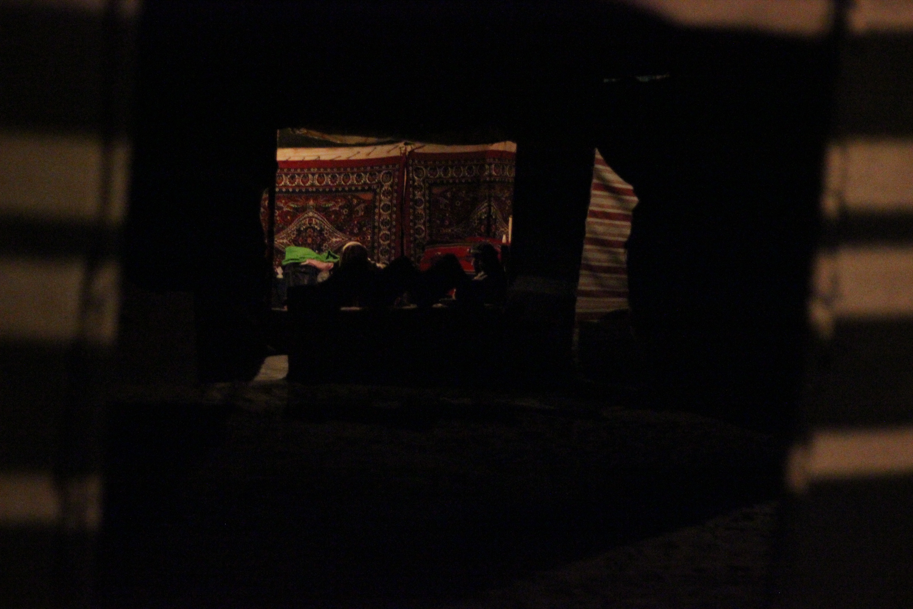 As I open up the thick camel skin covering the entrance of the tent, light floods in to reveal the brilliant colours and patterns of the carpets surrounding me. It’s a simple place, furnished only with a bed, a lamp, and a piece of string hanging across the ceiling which I used to hang my clothes – and I suddenly feel grateful for having had a moment in this beautiful place, which I would not have had had I slept outside.